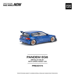 POP RACE - 1/64 - PANDEM CIVIC EG6 METALLIC BLUE WITH OPEN HOOD